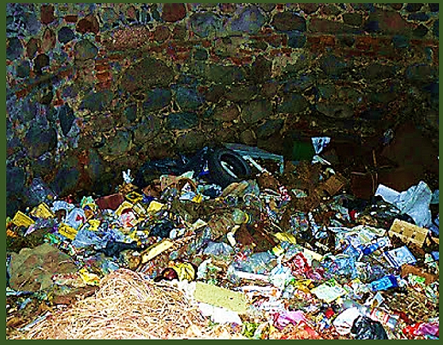 Вдобавок, кто-то приспособил погреб под свалку для мусора. Так, что вот такая история погреба: вино – топливо – мусор.