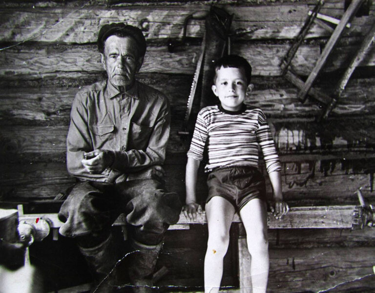 Александр Улыбин с дедушкой. Деревня Христово, 1977-1978 г.