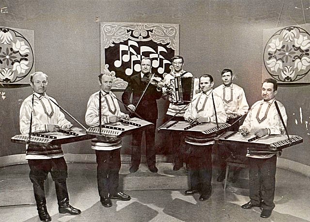 Фальклорны ансамбль «Груздаўскія дзяды» на здымках перадачы «Спяваюць цымбалы» (1976 год)
