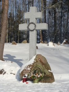 Крест стоит приблизительно на том месте, где была церковь в Хатыни