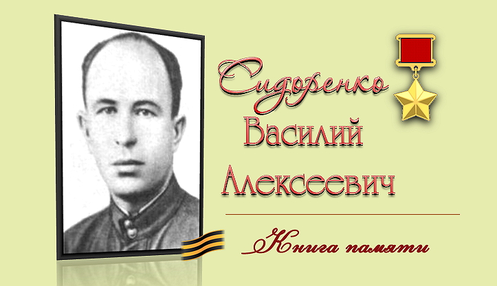 Указом Президиума Верховного Совета СССР от 24 марта 1945 г. командиру артиллерийского взвода стрелкового батальона младшему лейтенанту Сидоренко Василию Алексеевичу присвоено звание Героя Советского Союза.