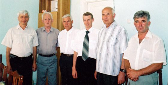 Яўгеній Іванавіч Чарэнка (другі злева) з аднадумцамі будаўнікамі.