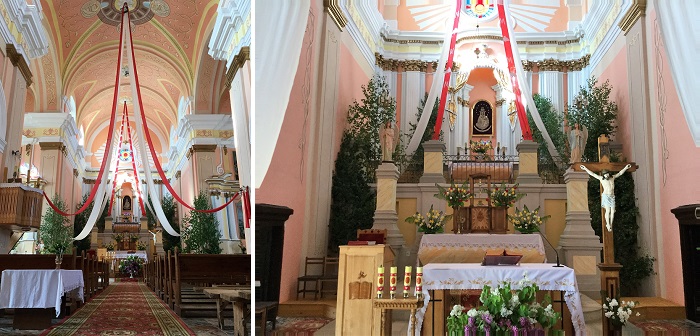 Згодна з легендай,анёлы перанеслі дом Марыі з Палесціны ў Італію ў горад Ларэта,выратаваўшы ад разарэння ворагам.Алтар складаецца з двух частак,пярэдняй для веруючых і дома- алтара(ззаду).